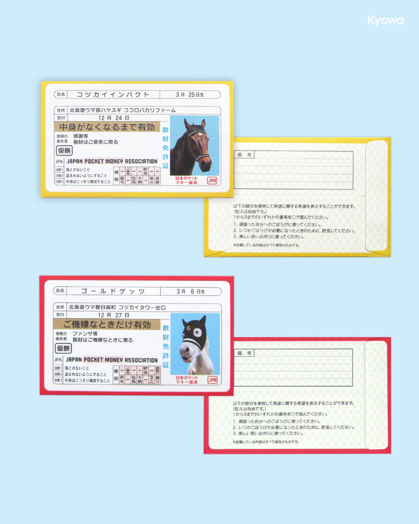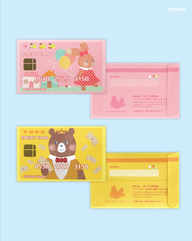 クレジットカードのパロディデザインのぷち袋"おこさましょうかい”と、免許証のパロディデザインのぷち袋”免許証風"の登場です💳✨クレジットカード風デザインではICチップ部分が箔押しになっており、本物のカードに見えます。渡すときに話題になる事間違いなしのぷち袋です!