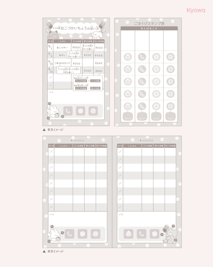 【おこづかいちょう スマートフォン柄 48ページ(2柄アソート)】JANコード:4969757176177