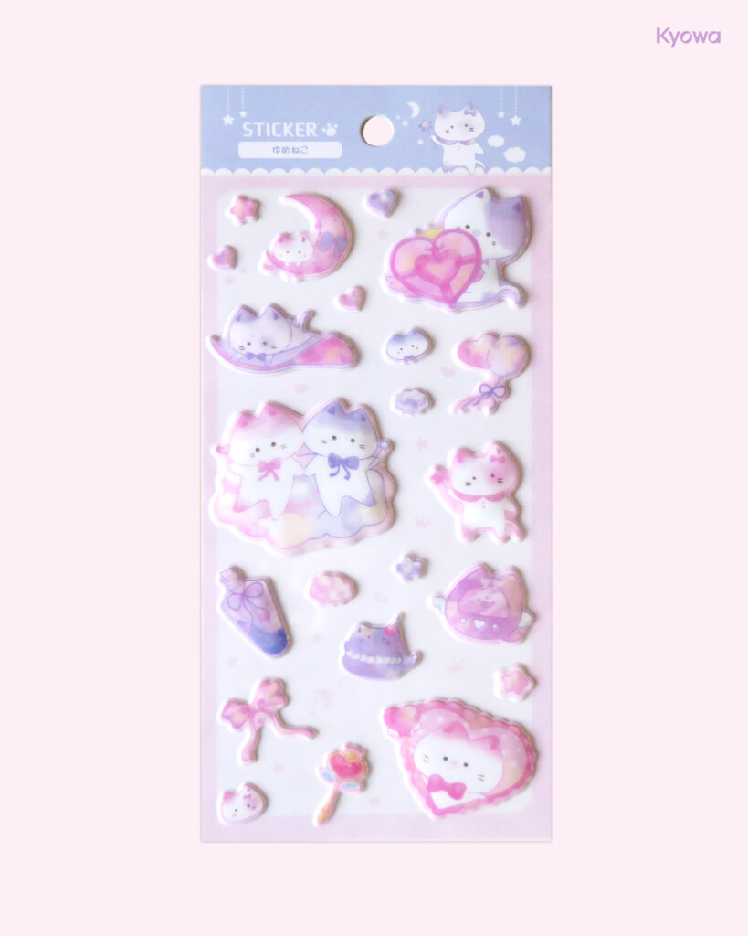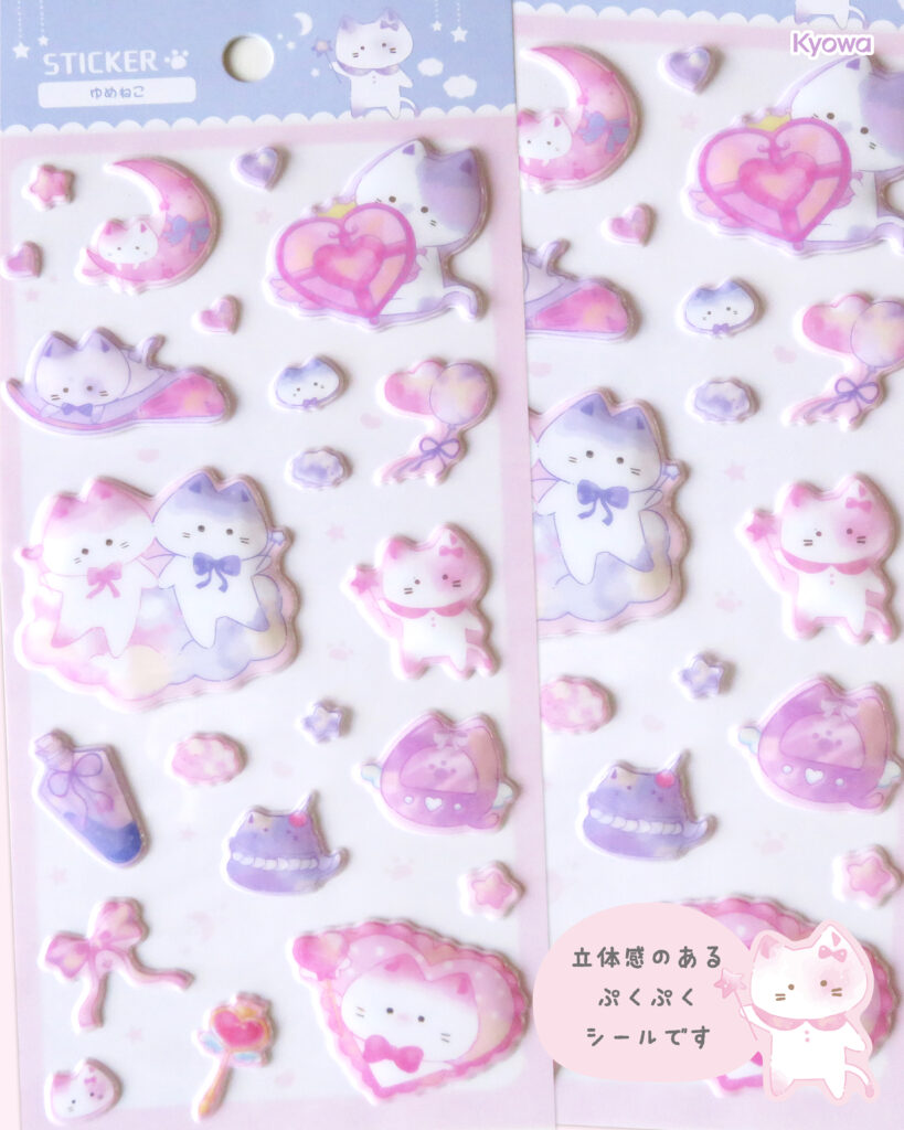 🐱立体感のあるぷくぷくシールの登場です💝ゆめかわいいねこがデザインされた"ゆめねこ"˙˚ʚɞ˚˙風船や星、ハートなど、いろんなモチーフがぷっくり可愛いシールになっています。デコレーションのワンポイントなどに使ってみてください🎀✨