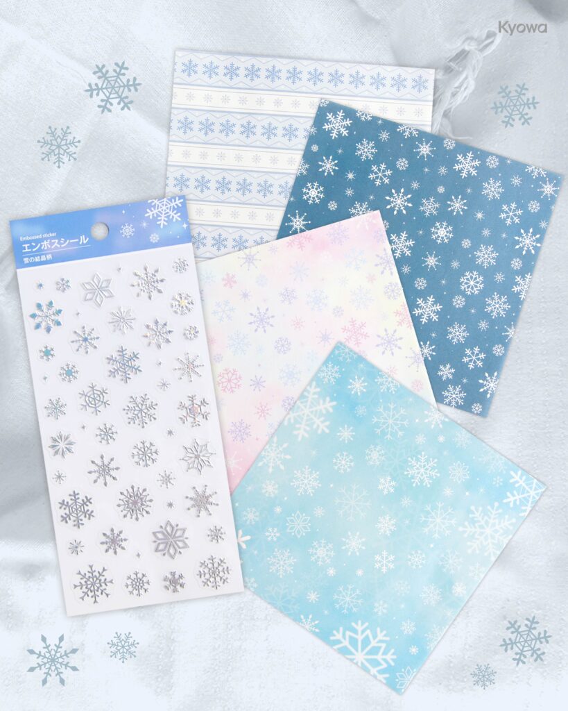 ❄雪の結晶をデザインした文具、できました❄冬の空を彩ってくれる雪の結晶がデザインペーパーとシールになりました!シールはエンボスシールになっていて、銀色の箔がキラキラと輝きます。コラージュやデコレーションなどに是非使ってみてください☃💙