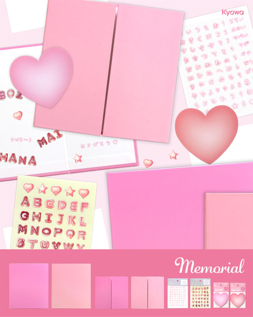 ゆるくて可愛い文字と、まるで風船のような文字シールや、ハートのミニカード。